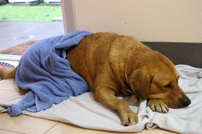 I dag och igår har regnet öst ner. Här har Missy kommit in till oss en stund för att torka och få lite mat.