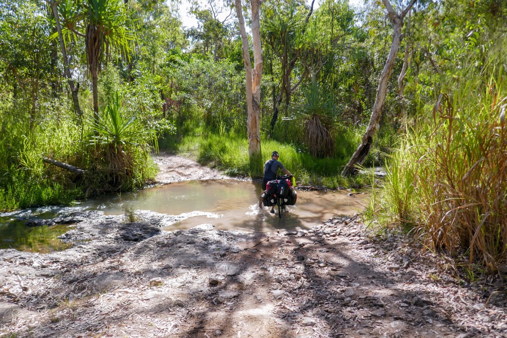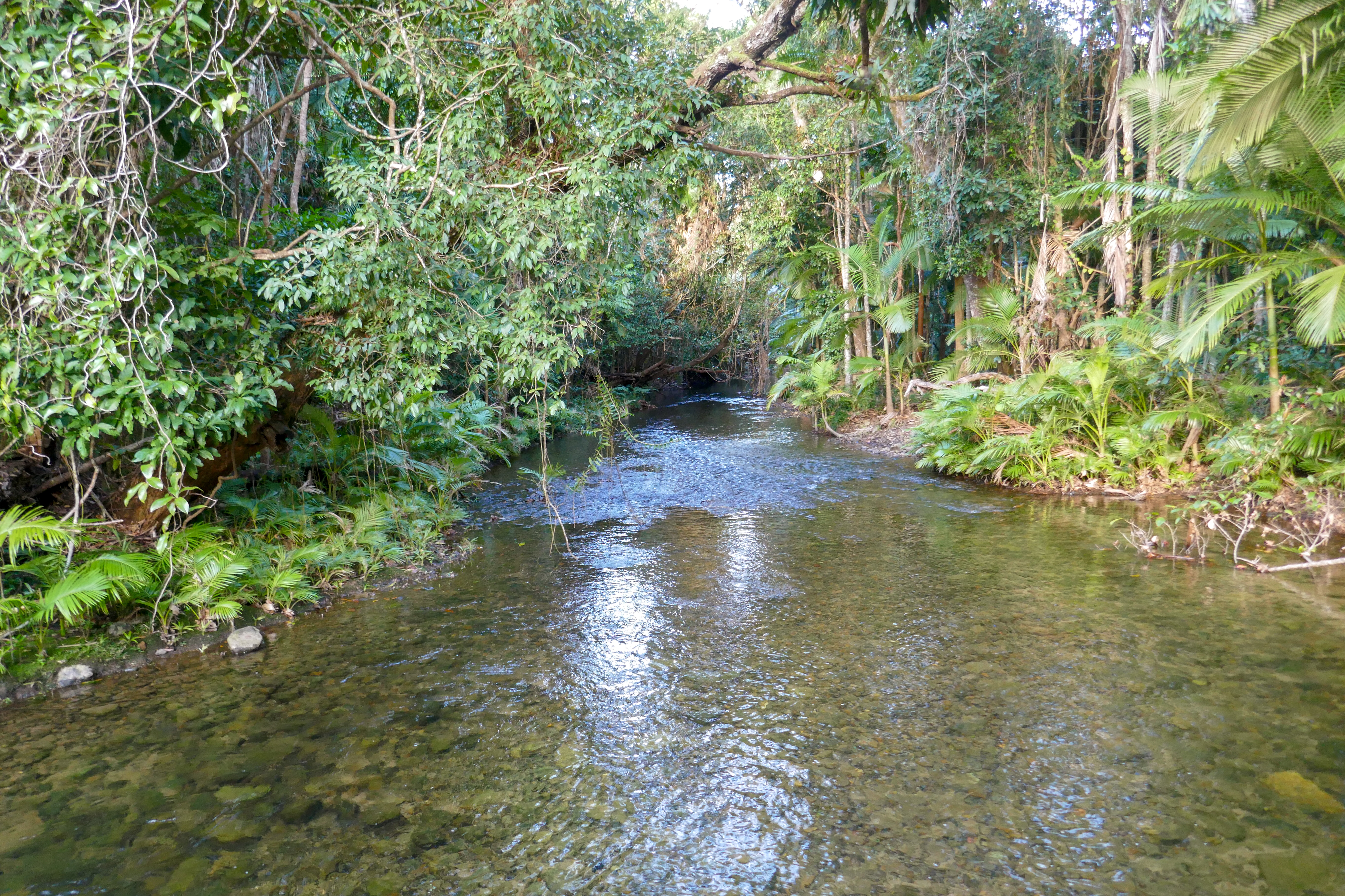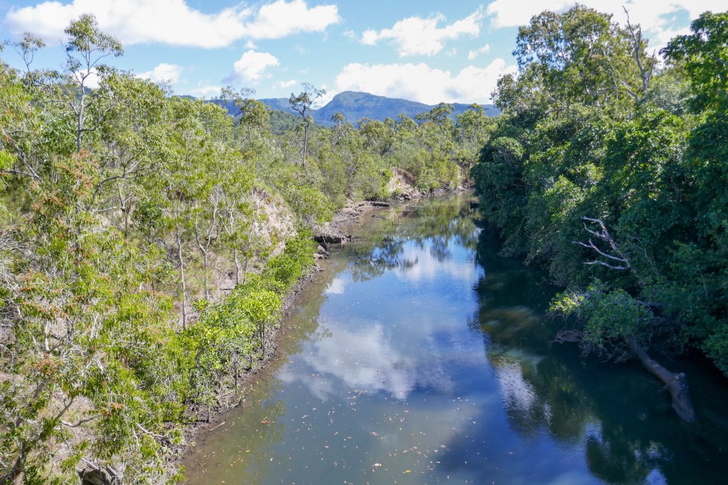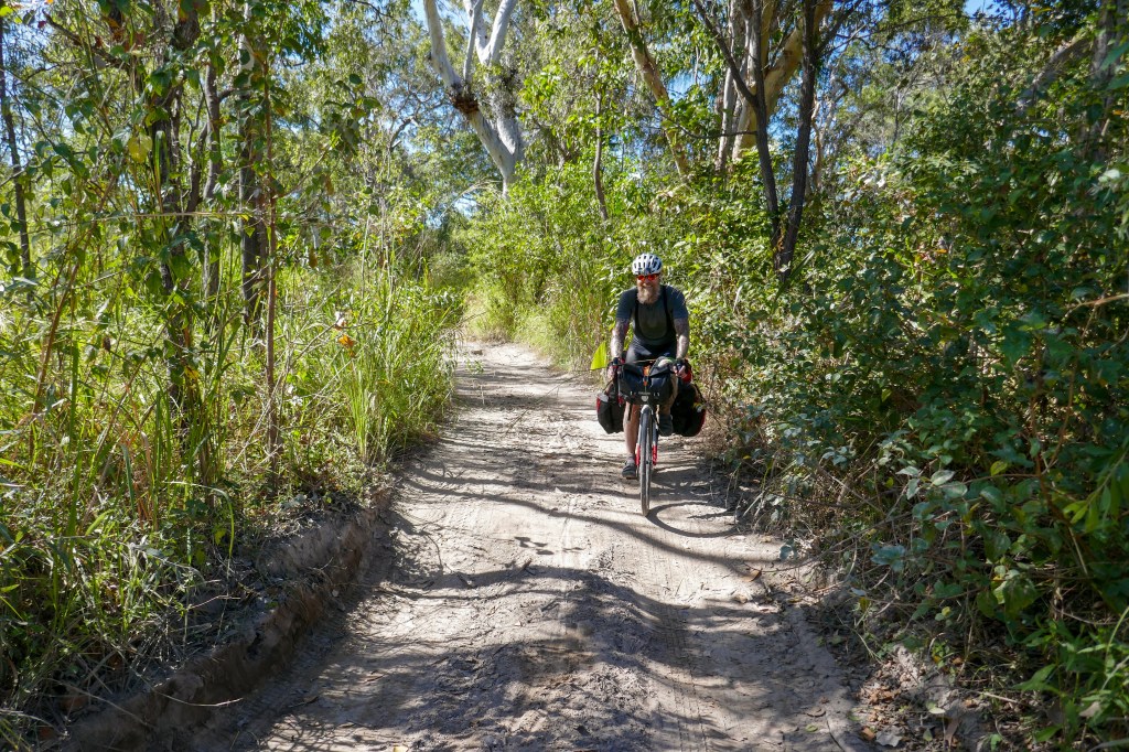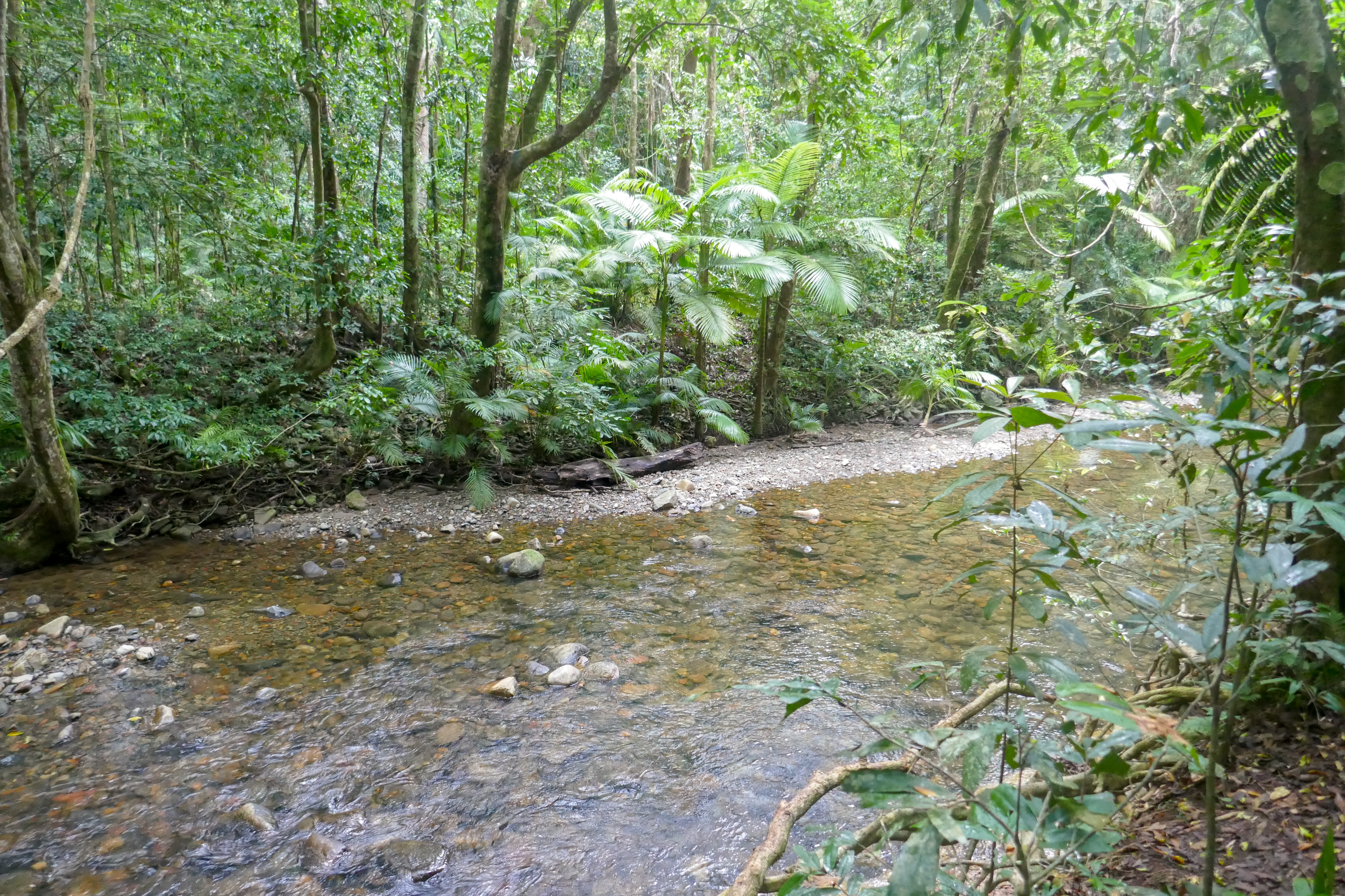 I dag har vi cyklat från Townsville till Balgal Beach. Efter ungefär fem mil stötte vi på en lång bilkö – det hade skett en olycka och vi fick inte passera. Som tur var visste Richard att det fanns en annan väg, vi cyklade tillbaka några kilometer och svängde in på en skogsväg. Det var roligt att ha lite äventyrscykling igen, vi fick både dra cyklarna bitvis och blöta ner fötterna. Det kom rök som vi tänkte kanske kom från olyckan, men det visade sig att det brann i skogen på sidan om vägen.