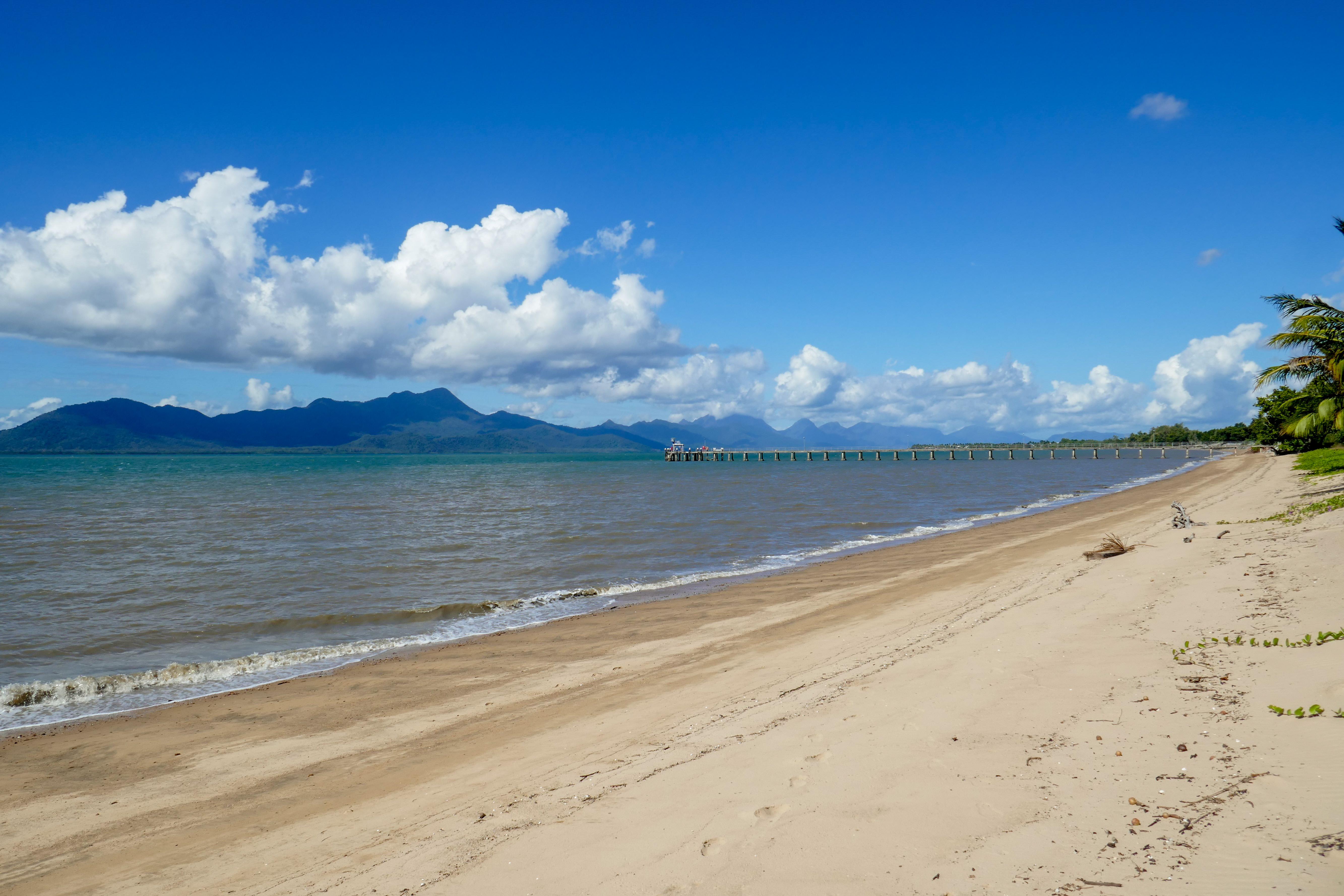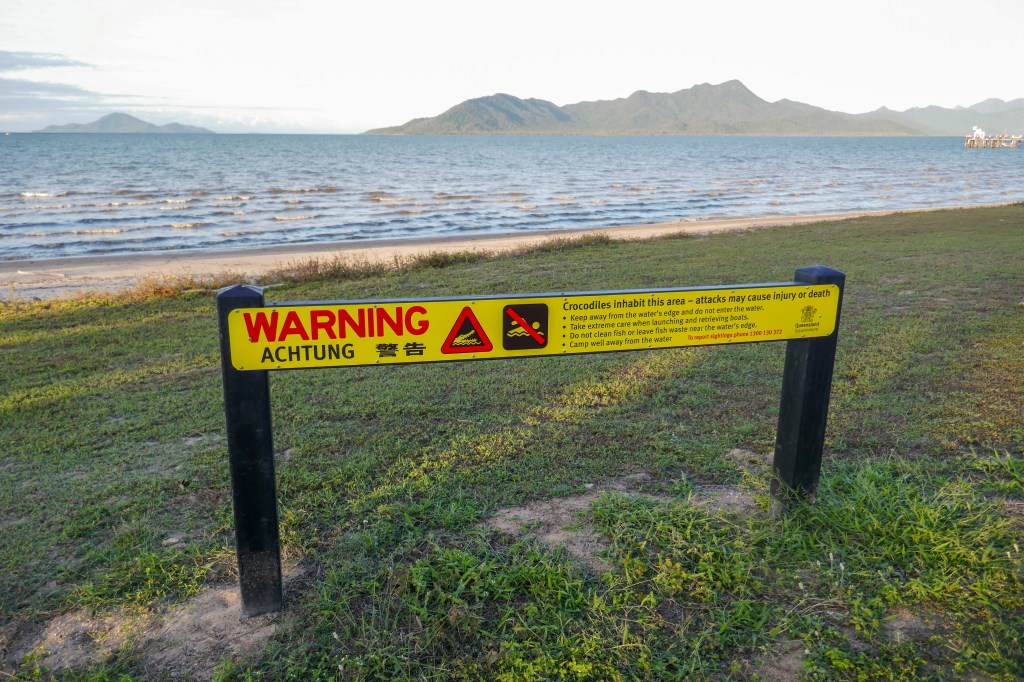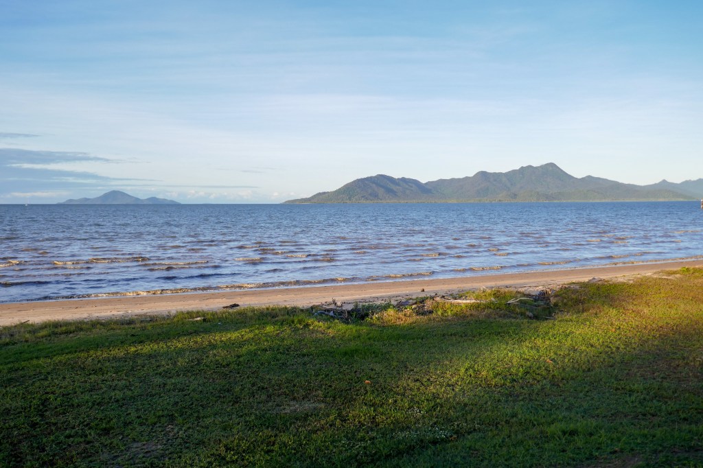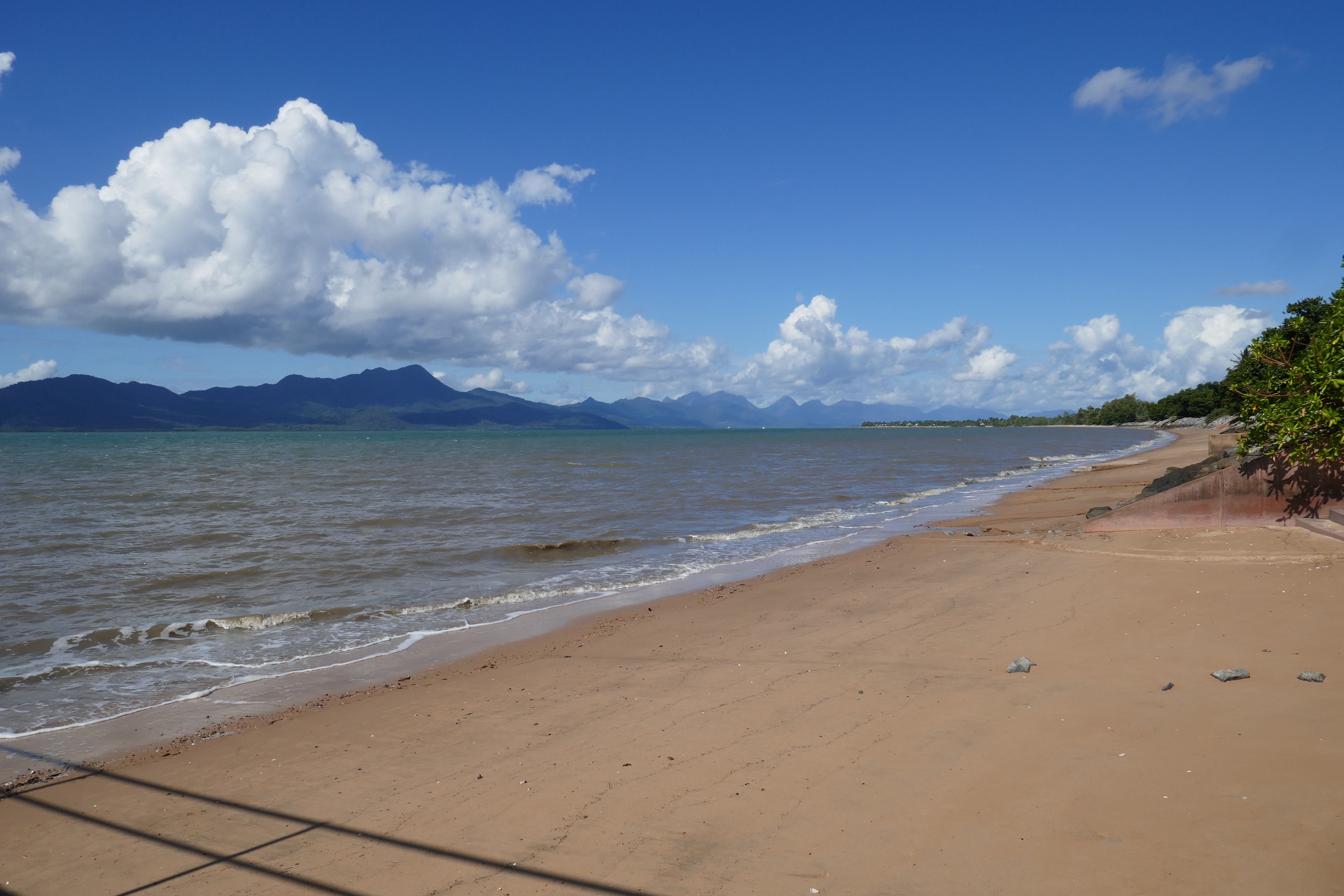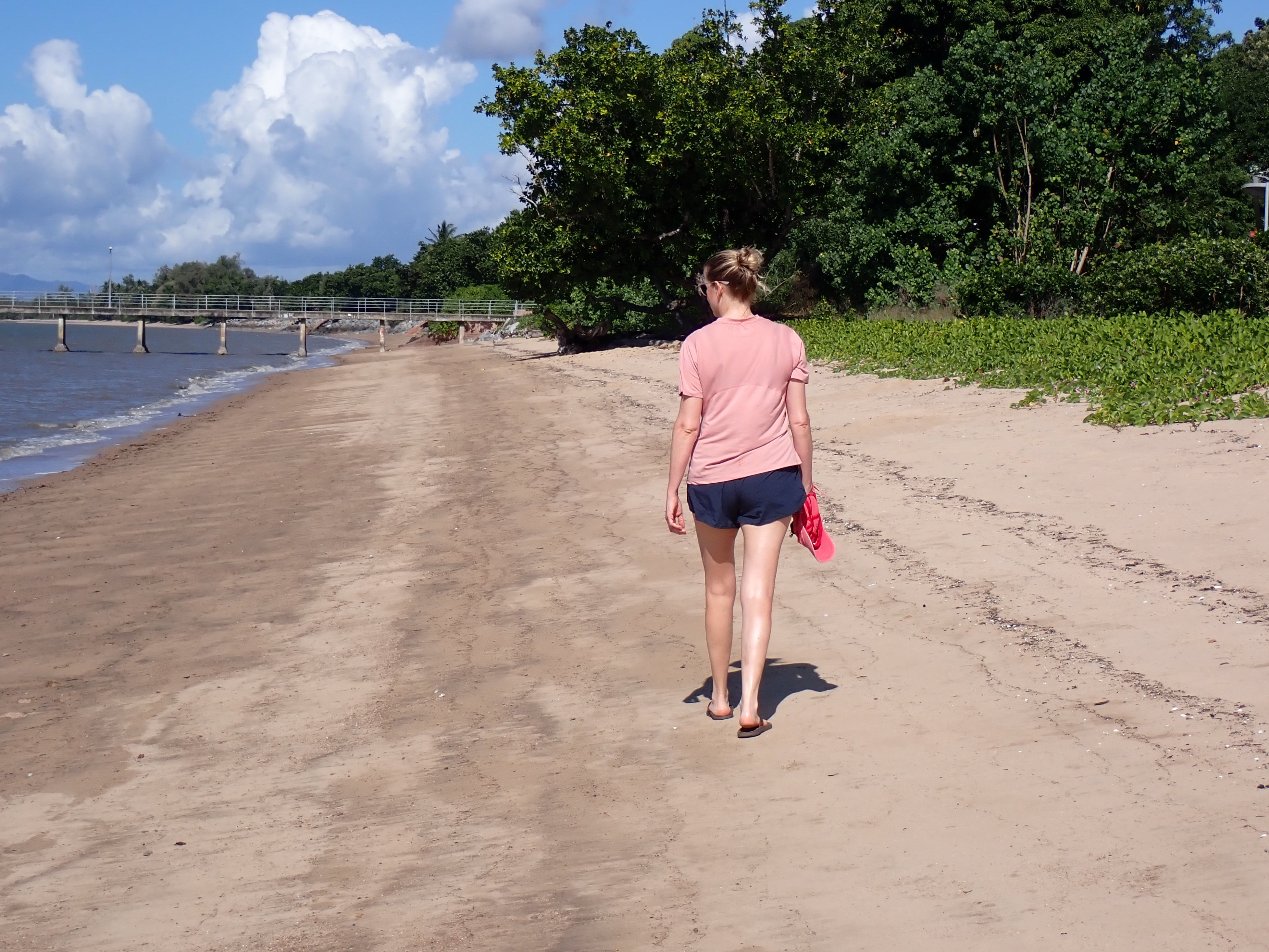 Stranden i Cardwell. Vi uppmanades av motellägaren att inte bada då det bor en 6,5 meter (!) lång krokodil här.