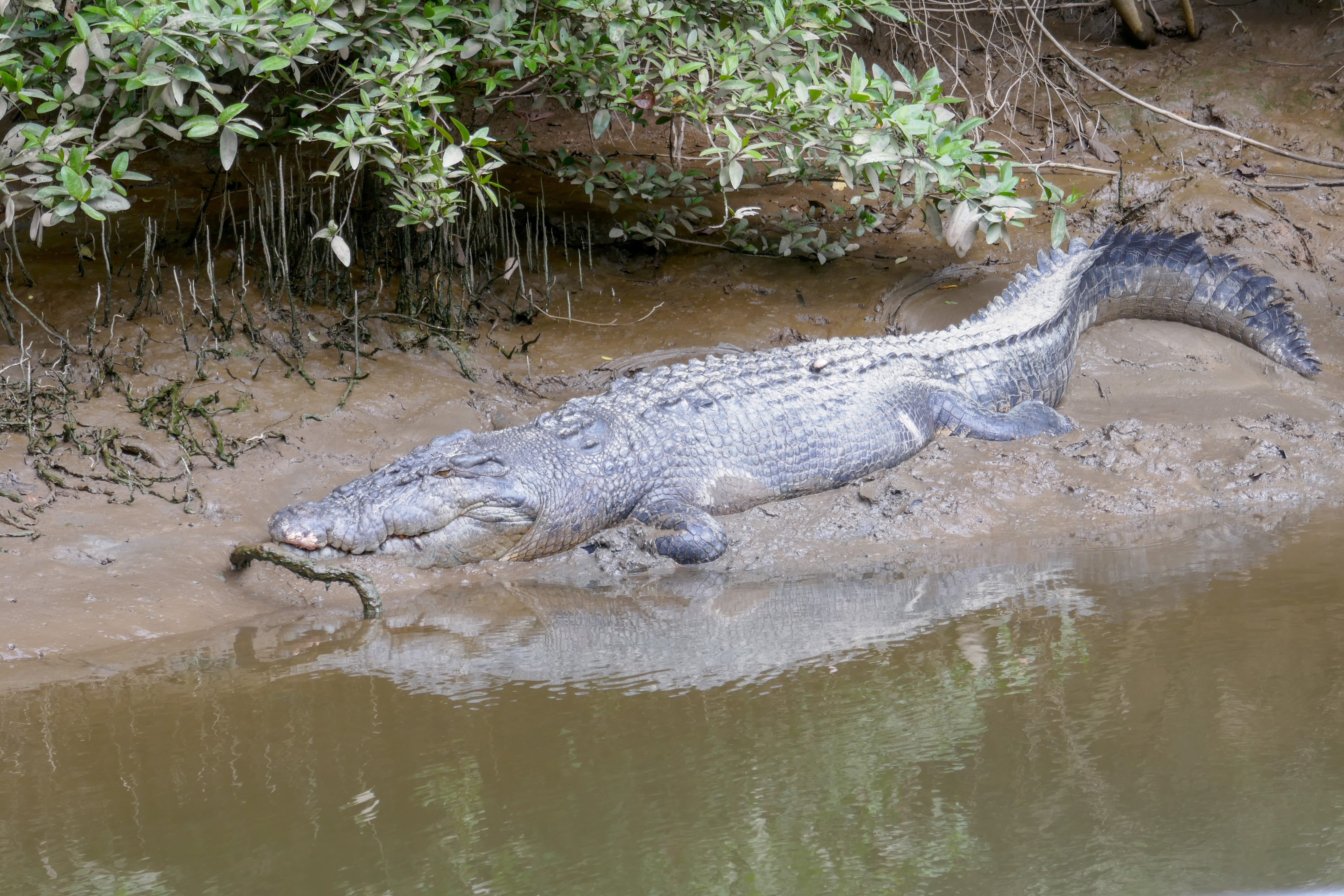 Floden är hem för mängder av spännande djur, bland annat saltvattenkrokodilen (deltakrokodil) som är världens största krokodil. Den kan leva i söt-, salt-, eller bräckt vatten. Vi åkte på en båttur på floden en dag och fick se alla dessa mäktiga krokodiler. Det är viktigt att inte gå nära flodstranden och såklart aldrig simma i floden.