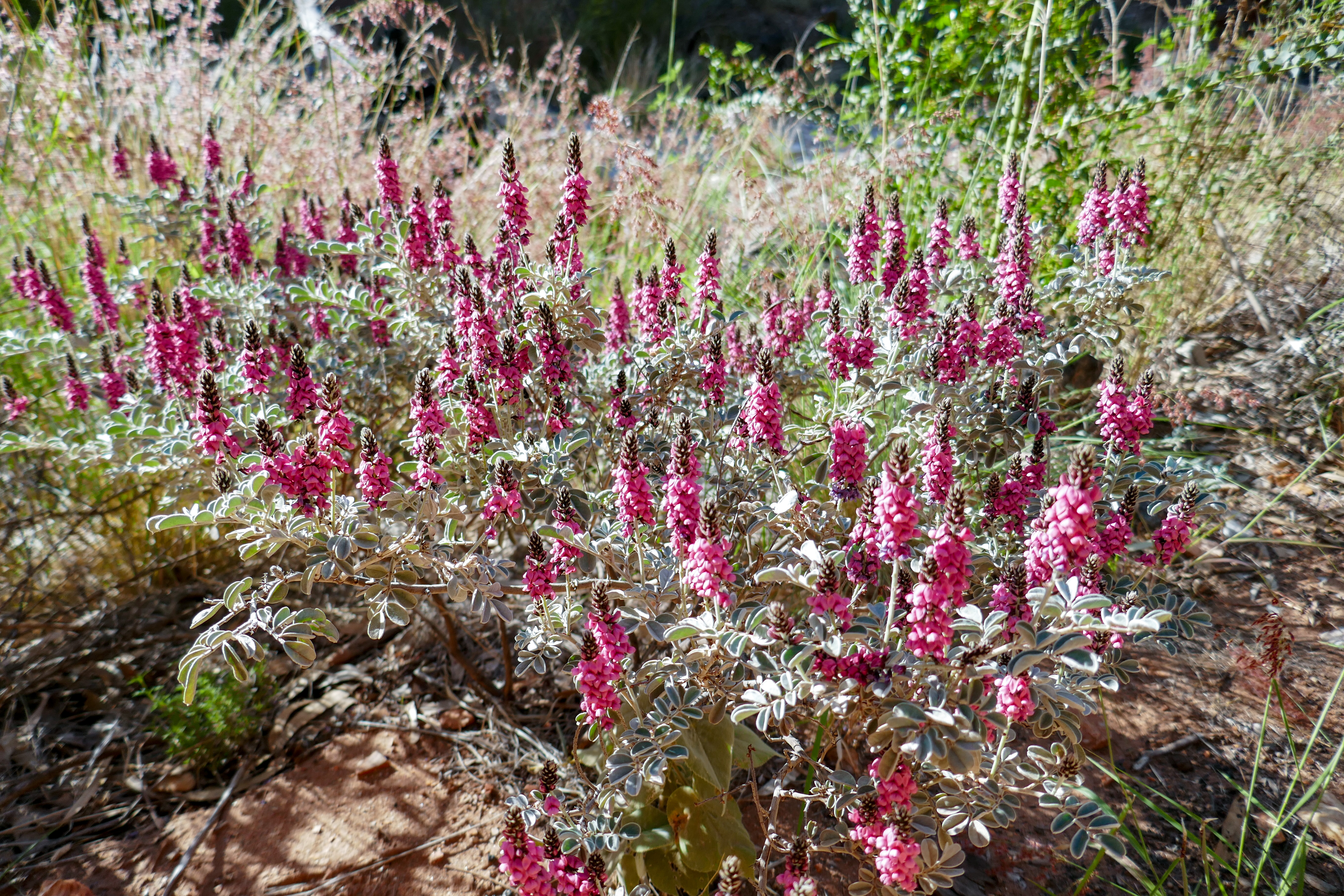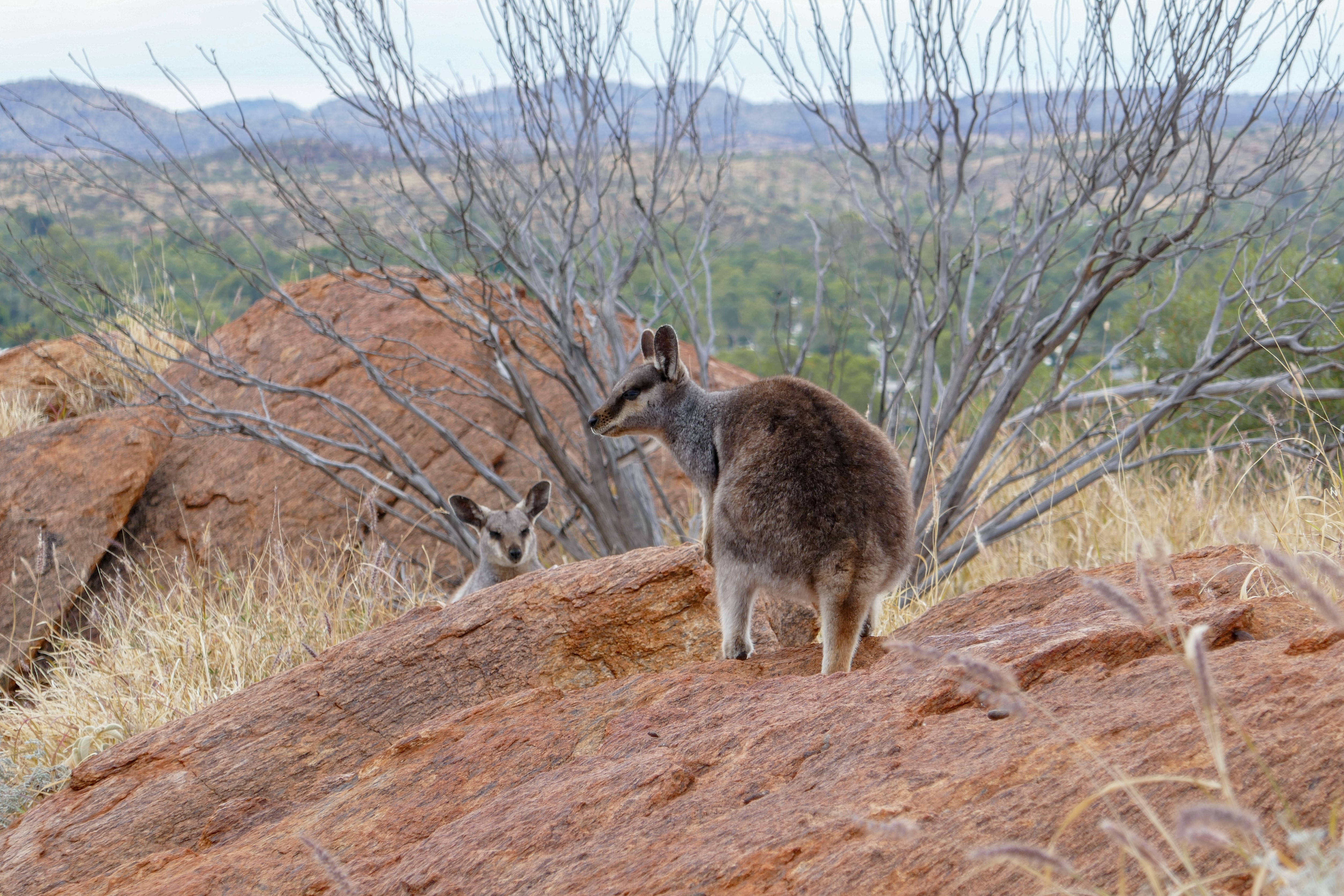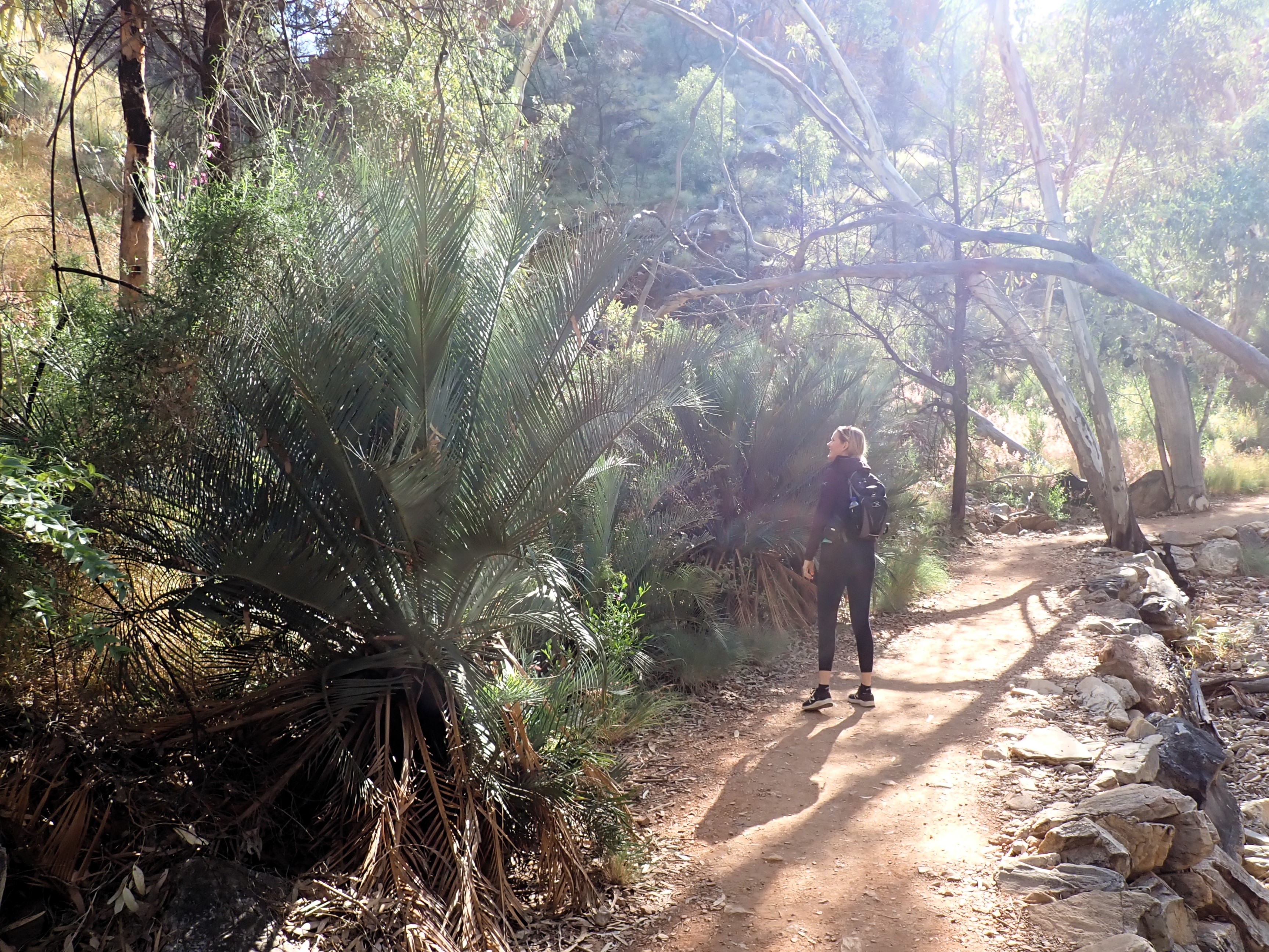 Vi startade dagen med en promenad till The Olive Pink Botanic Garden, en plats med inhemska ökenväxter som anlades av en dam (vid namn Olive Pink) på 50-talet. Jag hade läst innan att det fanns en utsiktspunkt vi kunde gå upp till och klippor där vi möjligtvis skulle kunna se kängurur.