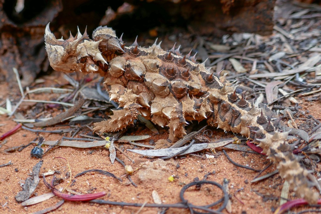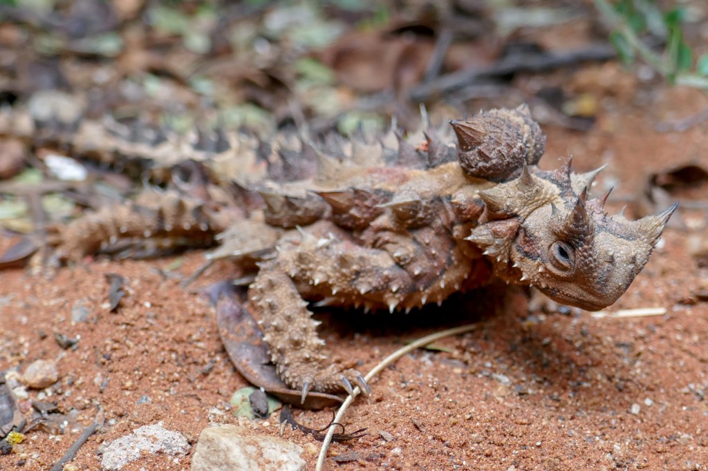 Efter det otroliga mötet med klippkängururna var vi uppsluppna men även lite känslomässigt utmattade. Vi slog oss ner i trädgårdens kafé och drack kaffe och åt en andra frukost. Tänk att vi fått uppleva detta. Sedan gick vi som planerat vidare till Alice Springs Reptile Centre – drömmen är att se dessa djur i sin naturliga miljö, men årstiden är fel för det. Det bästa var taggagamerna (thorny devils).