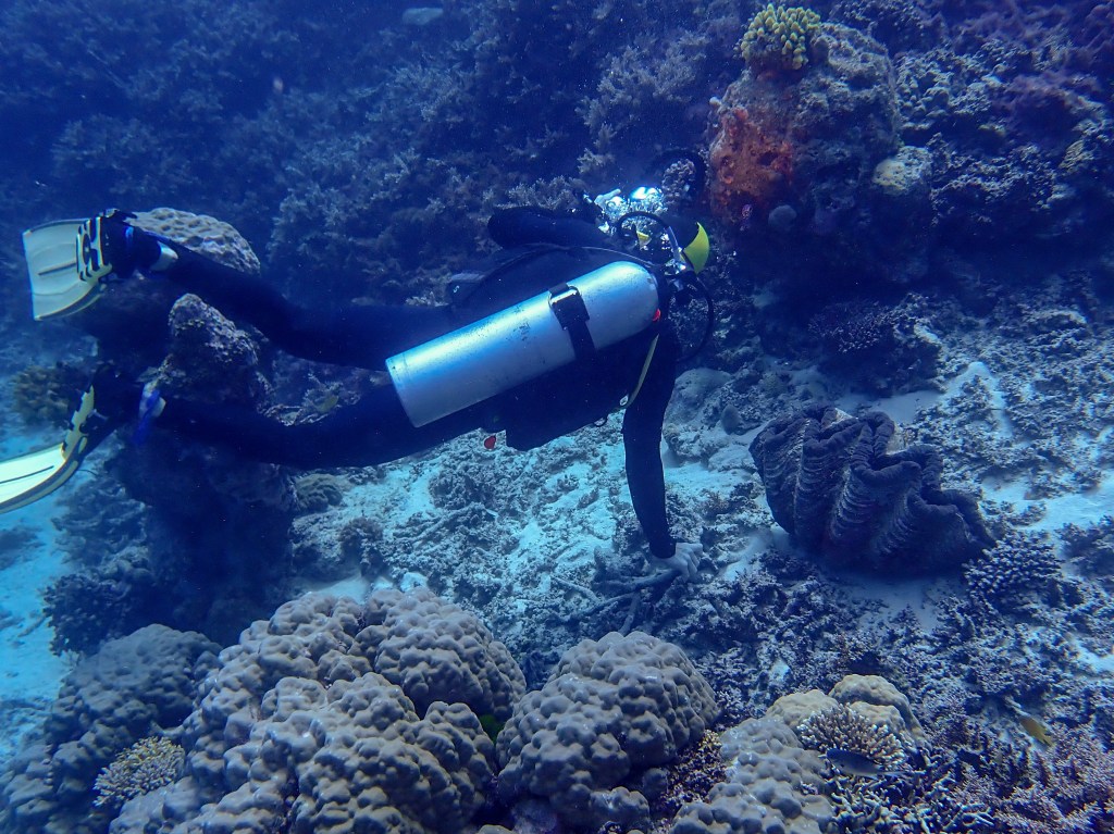 På torsdagen gick vi upp tidigt och körde från Daintree Rainforest till Port Douglas. Där checkade vi in på båten Silversonic för en heldagstur och tre dyk vid yttre kanten av Stora barriärrevet.